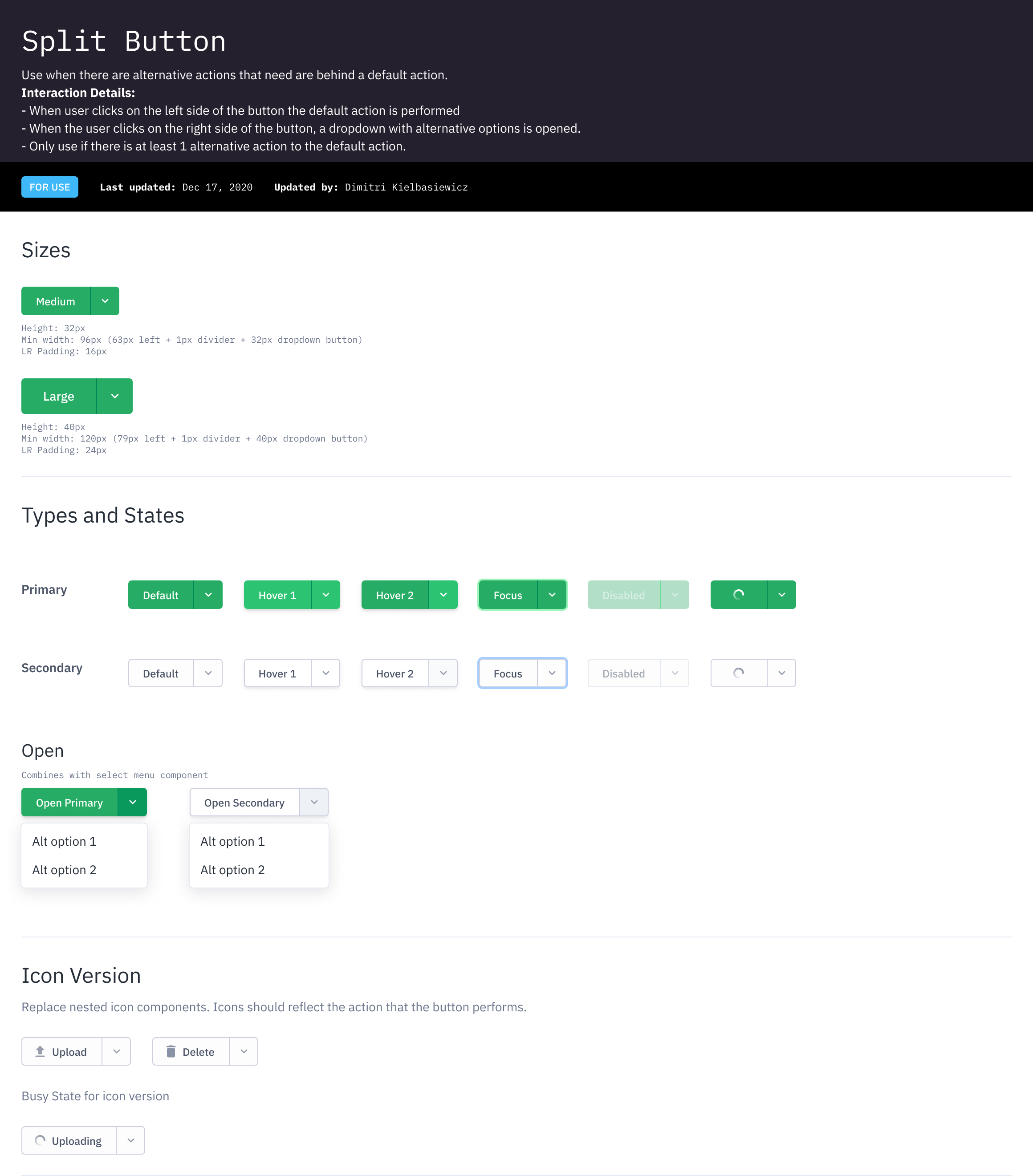 I partnered with our front-end engineers to stand up an MVP production component library with storybook.js so we would have a single source of truth for production components.